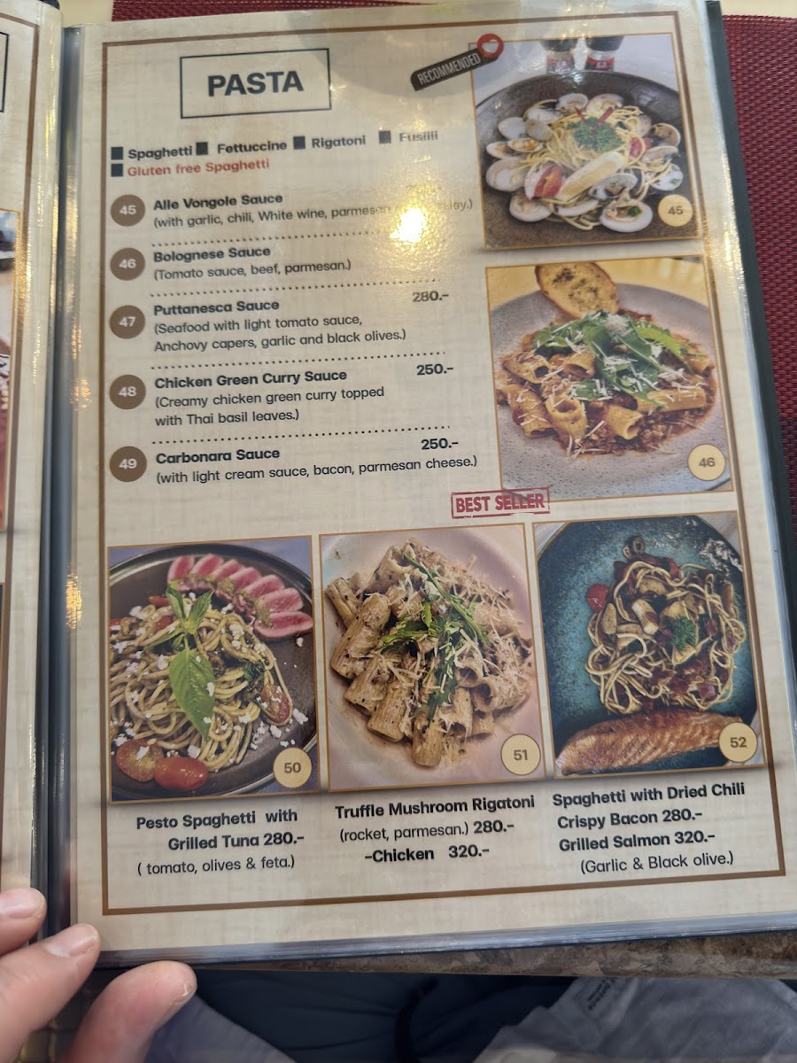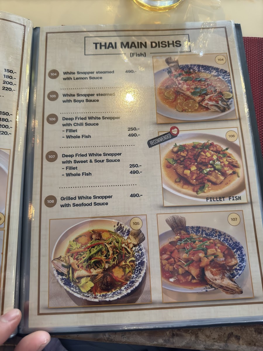 You’ll find comforting Thai classics like Red Curry with Pork and Papaya Salad, alongside fresh seafood options such as Baked Pineapple Fried Rice with Seafood and Seared Tuna. For those seeking familiar Western flavors, selections like grilled salmon and ribeye steak complement the menu’s diverse character.